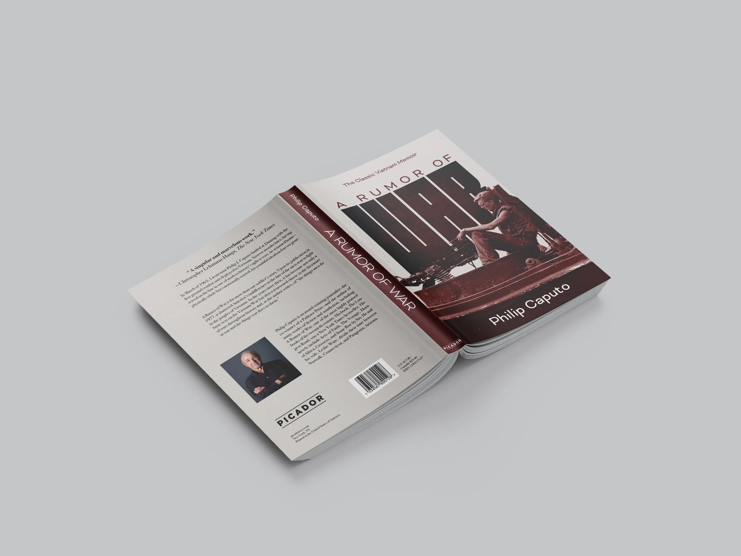 This project features a book cover design for A Rumor of War by Philip Caputo, a memoir of the Vietnam War. I used bold typography and muted, blood-red tones to reflect the book’s serious and contemplative mood. The imagery and layout emphasize the war’s impact, addressing both personal and historical perspectives.